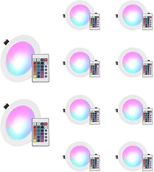 Megatron 4 inch slim panel 12 pack i ultra thin recessed led pot lights / downlights 9 watts 700 lumens, dimmable, insulation contact ic rated, light box and led ceiling light are ul and energy star approved, 3000k /warm white, lumiere led, plafonnier and led lights are with junction box. Turn lights on and off, adjust brightness, choose from millions of different colors, and create dynamic light routines. Control lighting through our app, or connect it with amazon alexa or google assistant to use voice commands. Weatherproof downlights are able to display your choice of daylight white, blue, red or green with no special switches, wires or controllers. Globe electric smart 4 in. More lighting with modern recessed multiple trim lighting. Add a splash of color to your home with this colored puck light kit. Including four energy efficient led lights with 16 programmable color options that can also be dimmed with a remote, a dc 12 volt wall power supply, and included cord and wiring. I am in the process of converting all of my recesses lights to led. Recessed lighting is the commercial electric ultra slim 4 in. 99 get it as soon as fri, jun 25 Halo has the largest assortment of 4 in. What i like about this product from commercial electric is that they are easy to install and easy to adjust the light temperature from warm (2700) to daylight (5000) just with the remote.