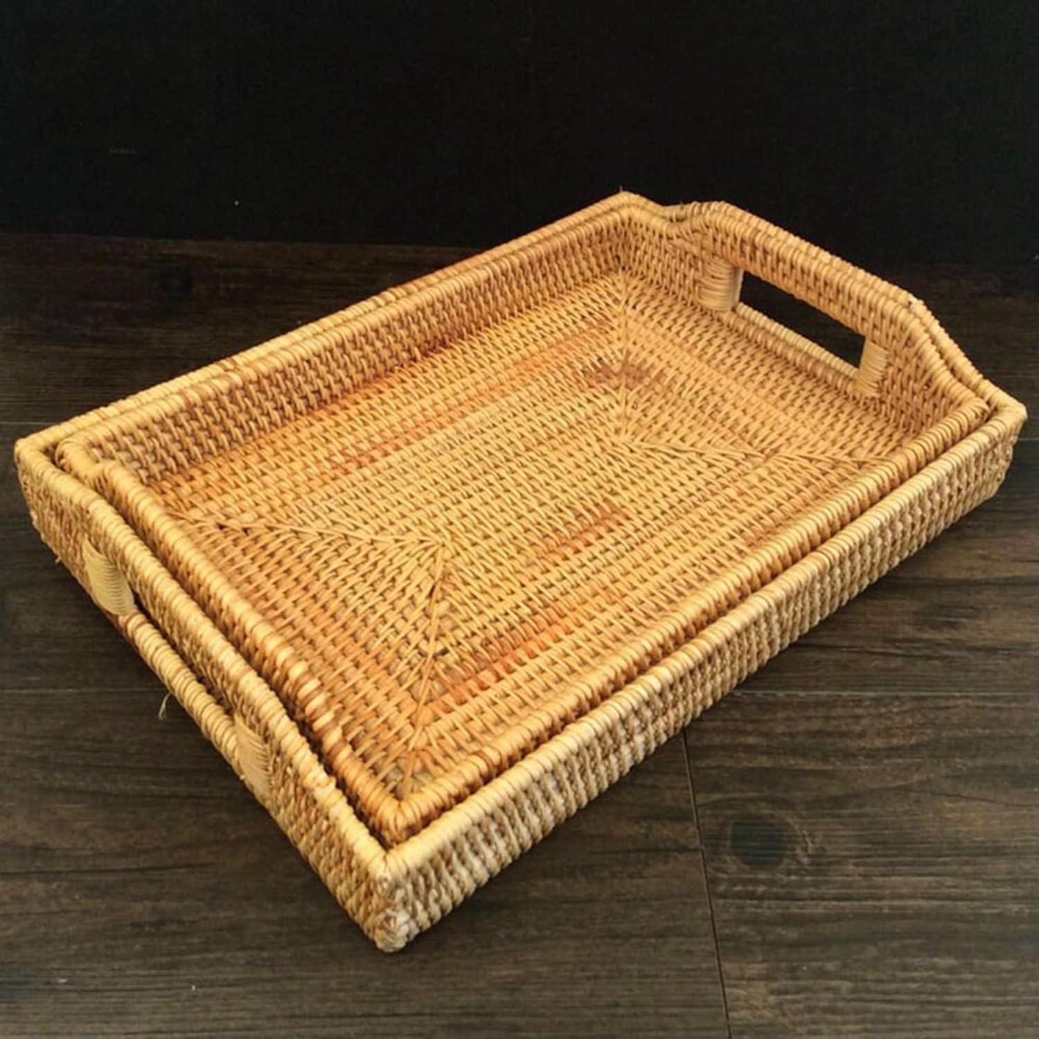 Rectangular Rattan Tray With Handles / Amazon Com Hand Woven Rectangular Rattan Tray With Handles For Breakfast Drinks Snacks For Coffee Table Or Ottoman Wicker Rattan Ottoman Tray Trays For Coffee Table 14 5x10 5x2in By Mindful Interiors Kitchen Dining / Its uses are endless for entertaining.. Use it to organize your coasters and remotes, set a table, serve drinks, or just add a new elegant touch. These wicker and rattan serving trays with handles are the perfect carriers of various items from the kitchen to the tabletop, easy to transform into a beautiful centerpiece, and a starting point for room decorations. Rattan wicker rectangular serving trays with handles, handwoven coffee trays for coffee, breakfast, bread, food, dish and decorative platter trays for dining table (small 14.5x10) 4.8 out of 5 stars 8 It also makes perfect dec The wood ottoman tray is super smooth and splinter free and won't snag your ottoman when placed it.