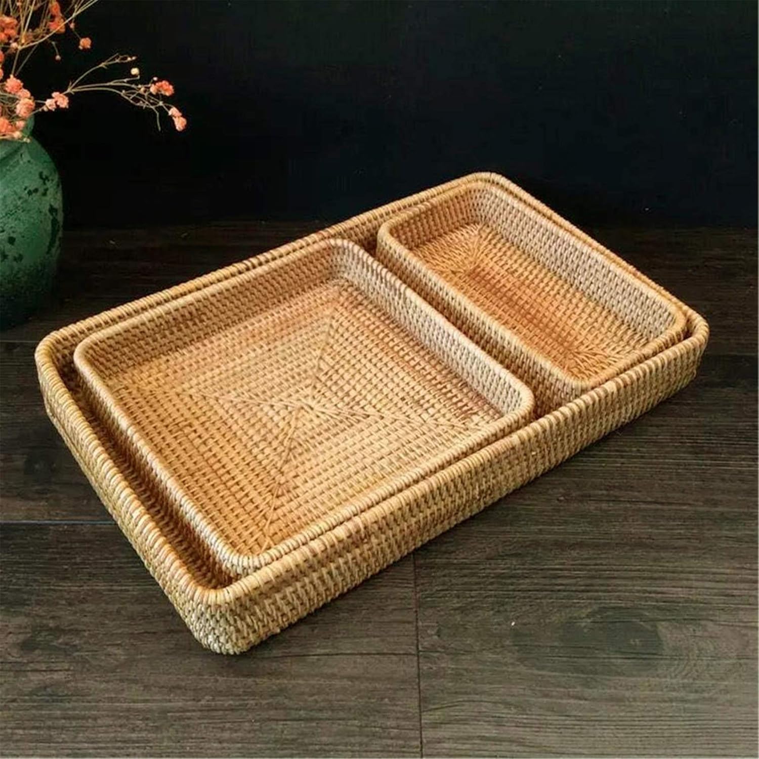 Rattan tray with handle 37x28xh5cm. Natural rattan serving tray with handles, handmade round wicker bread basket tray, woven baskets for fruit bread parties coffee breakfast round decorative tray (set of 2) by bayou breeze $162.99 ($81.50 per item) $179.99 Our rectangular rattan trays are perfect to serve up your morning cup of coffee or afternoon cocktails in style and its convenient cutout handles make it easy to carry from room to room. Rectangle woven wood rattan tray with handles | fruit basket catelliwoodcraft 5 out of 5 stars (256) $ 14.00 free shipping add to favorites rattan ottoman plate, ceramic plate, wicker boho trays ravenstudiocrafts 5 out of 5 stars (208) $ 19.95. Adding this rectangular tray to your décor brings both decorative and functional style and is a quick and easy way to change up the look of any room.
